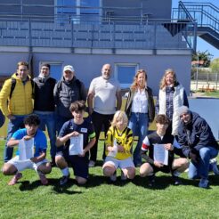 Auch die Mädels spielen bei uns Fußball! Schülerligabetreuer Wolfgang Benesch und die beste Torhüterin der Bezirksmeisterschaft, Kim Eggenberger Leonie Weiss, Kim Eggenberger & Alina Kusch